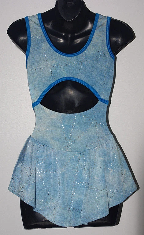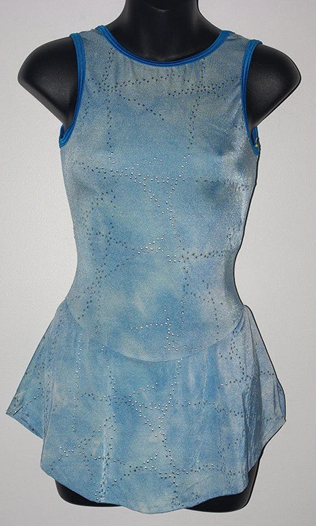 Sleeveless blue tye-dye lycra dress with silver dotted pattern all over. Pretty open back.