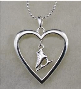 Ice Skate Inside Heart Pendant Necklace