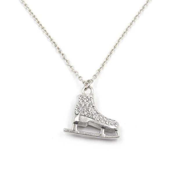 Pretty crystal ice skate pendant on an 18″ chain. Pendant is about 1″ in size.