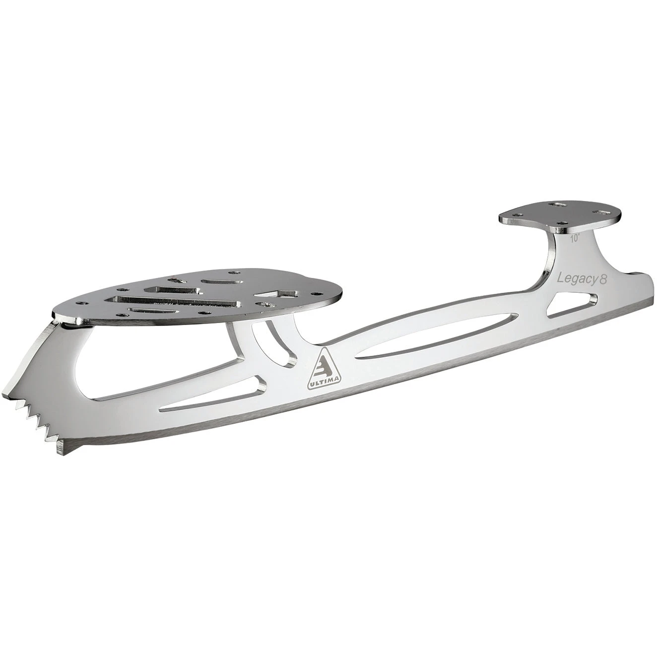Unique and lightweight design with 8′ rocker. The Legacy blade responds to the demand by top coaches for an intermediate blade with cross cut picks. Suitable for all double jumps and flying spins.