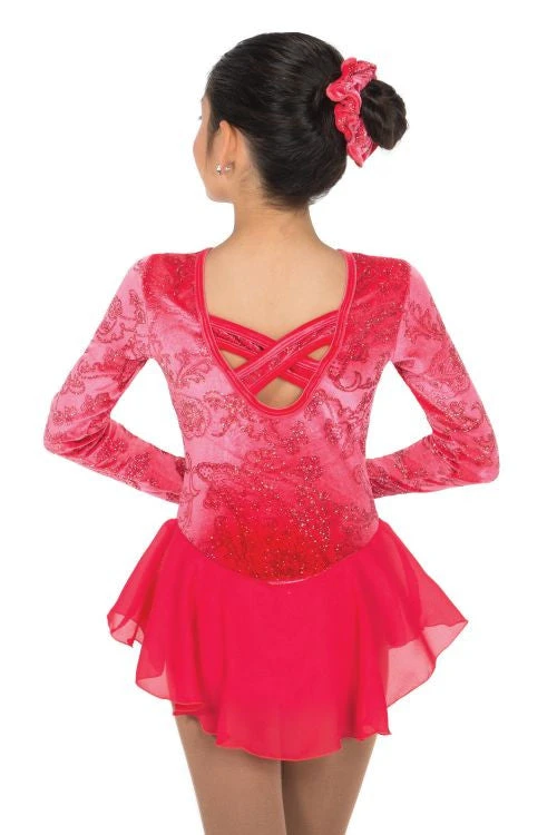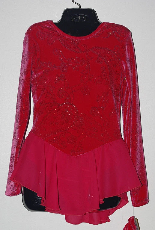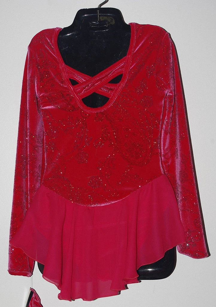 Deep, richly toned velvet dress in Watermelon color, with scoop neckline, crossed back glitter straps and a matching double georgette skirt.
