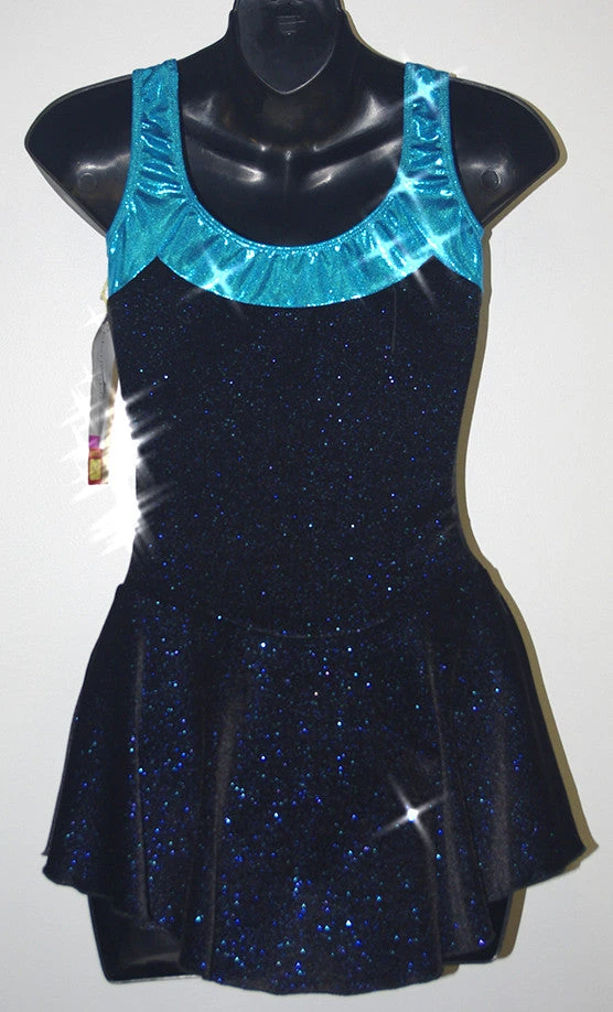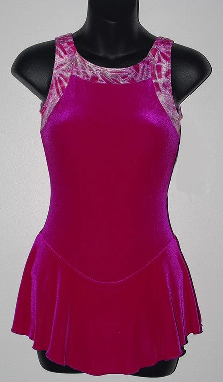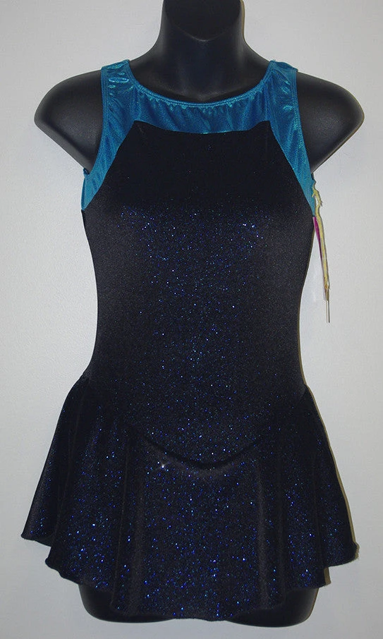 Sleeveless scoop neck dress with contrasting neckline fabric and attached trunks. This style runs small.