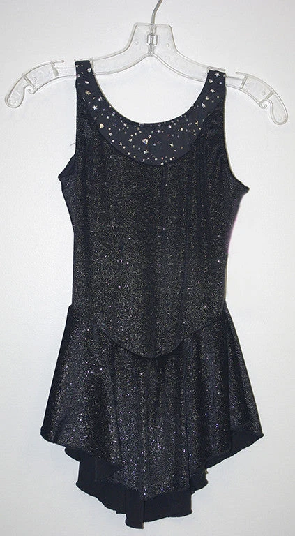 Sleeveless velvet dress with lycra silver foil detail on the bodice and back. Traditional skirt. Lined.