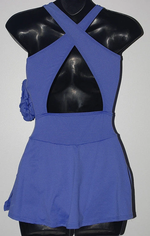 Mock halter dress with crossed straps in the back. Large crystal appliqué to add lots of sparkle! Straight skirt with side slits. Lined.