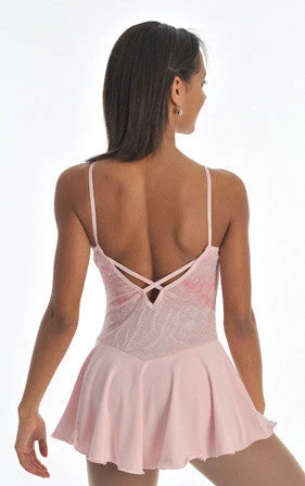 Camisole dress with 2-layer stretch georgette skirt. Lovely pink sparkle bodice with pinched front at bust. Dress is made long in the torso.
